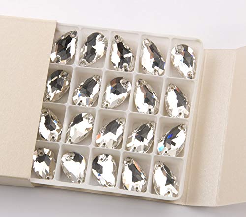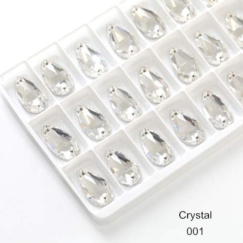 PIETRA GOCCIA DA CUCIRE CRISTALLO STRASS TRASPARENTE GOCCE CHICCO LACRIMA DOPPIO FORO Abito Sposa Teardrop Brillabenny (13x22mm)