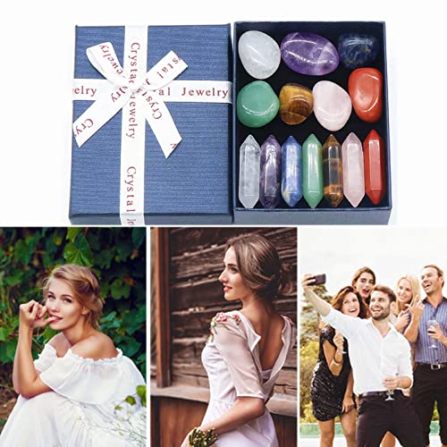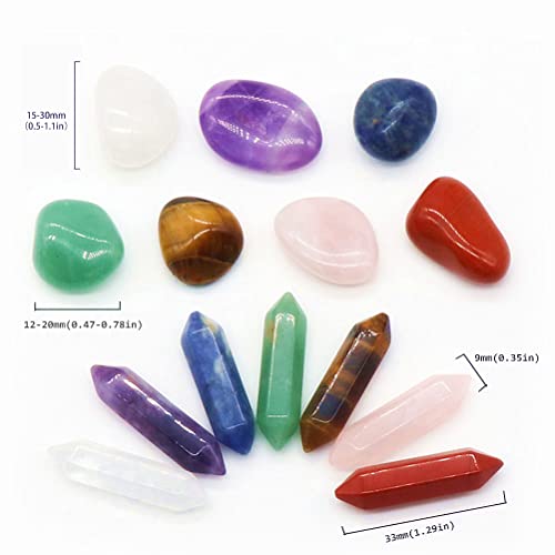 Set di Pietre e Cristalli Sette Chakra: i normali set hanno normalmente solo un set con 7 pietre chakra colorate, ma vi forniamo due set con 14 pietre naturali dei chakra. Un gruppo di pietre chakra è appuntito e un gruppo di pietre dell'aura è rotondo.La forma della testa è adatta per yoga e meditazione e può essere utilizzata anche per accessori, in modo che questo cristallo curativo vi accompagnerà sempre al vostro fianco.