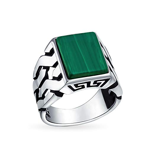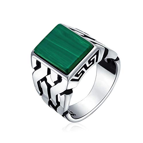 Pietre preziose Cuban Curb Link Chain Band Malachite Rettangolo Signet Ring per gli uomini 925 Sterling Silver fatto a mano in Turchia