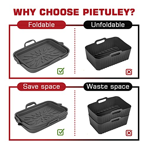 Pietuley 2 Pezzi Teglie per Friggitrice ad Aria Pieghevol, Cestino Stampi per Friggitrice ad Aria, Contenitori in Silicone, Carta Tappetino Forno per Friggitrice ad Aria Accessori Griglia Fogli Grigio