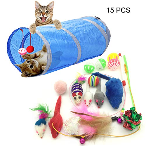 15 Pezzi giocattoli diversi in un unico pacchetto come teaser bacchetta, giocattolo piega, peluche giocattolo, Cat Tunnel e così via, davvero economico, non è necessario acquistare giocattoli per il vostro animale domestico di frequente.