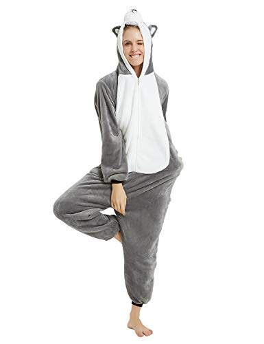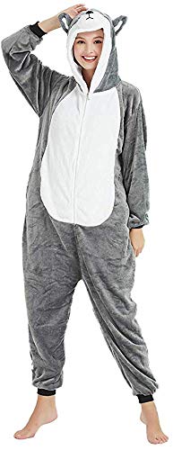 Pigiama Animali Cosplay Party Costume di Carnevale Halloween Tuta Unisex Pigiama Intero OnePiece Regalo di Compleanno Taglia S,M,L,XL (M(155-168cm), Cane-Grigio)