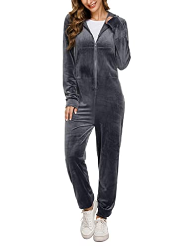 NB Pigiama Donna Intero in Velluto Pigiama Tutina con Cappuccio Cerniera Onesie Pigiami Interi Jumpsuit Invernale Abbigliamento da Notte Grigio XXL