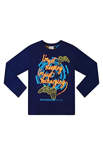 Pigiama lungo da ragazzo con scritta "I'm Not Sleeping I'm Just Recharging", da 11 a 16 anni, blu AOP Blu 12-13 Anni