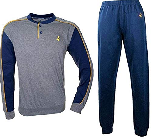 Pigiama Serafino calibrato Lungo Cotone Jersey Uomo Colore Inchiostro Art. 2141187B (XXXXXL (60))