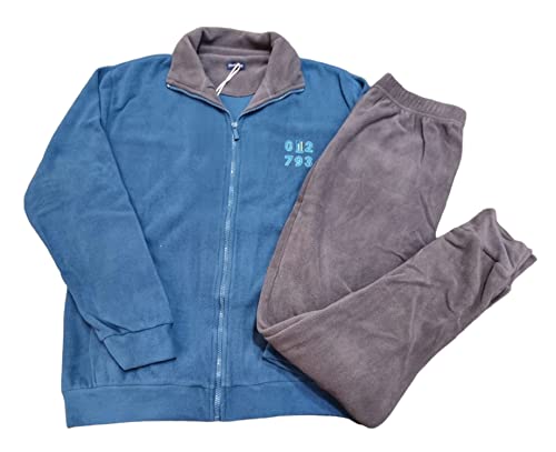 Pigiama Uomo Invernale Micro Pile Caldo e Morbido (L, Grigio Zip)