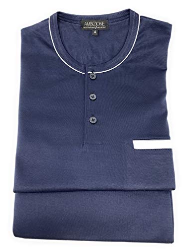 BIP BIP Pigiama per Uomo Due Pezzi Tinta Unita Modello Serafino con Tre Bottoni in Puro Cotone makò Mercerizzato Peso Primaverile Art. 4243 (Pacific Blu, 58/XXXL)