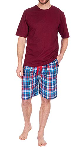 Pigiama da Uomo Set Top T-Shirt Manica Corta & Intrecciato a Quadri Pantaloni Corti
