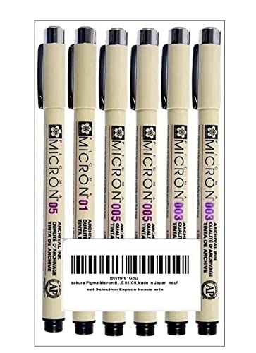 PIGMA MICRON - Fineliner, 6 pezzi nero .003.003.005.005.01.05, Made in Japan