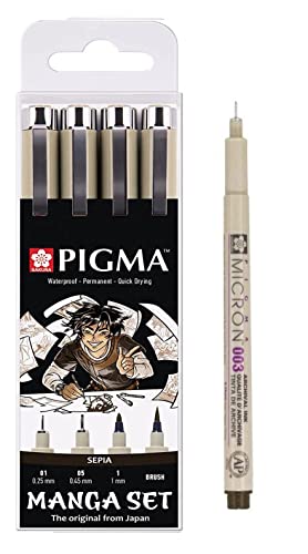 Pigma Micron Sakura 01.05.1mm.brush. Custodia con 4 feltri di seppia + 003