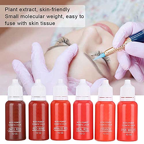 Pigmento per Tatuaggi da 15 Ml, 6 Parti/Set Pigmento per Tatuaggi Semipermanente, Set di Inchiostri per Tatuaggi Separati Inchiostro Liquido con Estratto Vegetale, per Trucco di Bellezza(Set labbra)