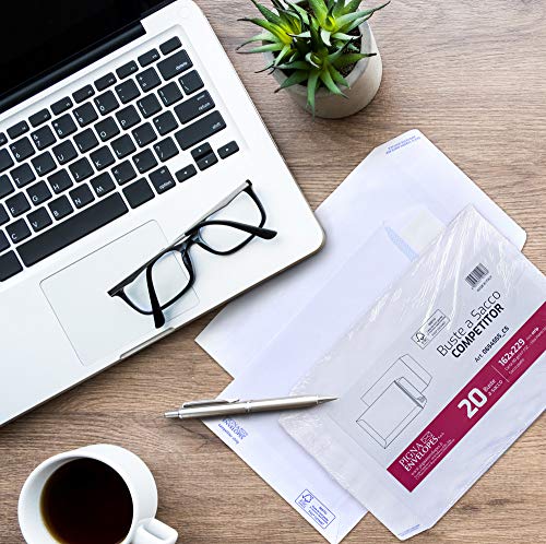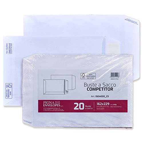 Pigna Competitor PK0654555 Pak. 20 - Buste a Sacco Piatto Strip F.To 162 x 229 in Carta Uso Mano Fsc 80 g