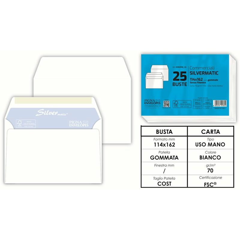 Conf. 25 buste bianche 114x162mm 70g/m2 gommate senza finestra ATTENZIONE: SE IN FOTO O NEL TITOLO VIENE VISUALIZZATO UN ASSORTIMENTO O ESPOSITORE, IL PREZZO FA RIFERIMENTO AL SINGOLO PEZZO E NON ALLA CONFEZIONE. NOTA SUI TEMPI DI EVASIONE E SPEDIZIONE: ACQUISTANDO QUESTO PRODOTTO I TEMPI DI GESTIONE POSSONO ARRIVARE FINO A 10 GIORNI LAVORATIVI.