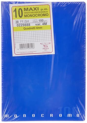 Pigna Monocromo Conf. 10 pz. 02298884M, Quaderno f.to A4, Rigatura 4M, quadretti 4 mm, Carta 100g/mq.
