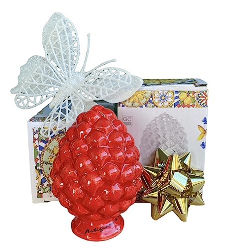 GMM Pigna Siciliana, Pigna artistica, Classica, Moderna, Decorativa, Ornamentale, Pigna Soprammobile Design Siciliano, Oggetto tipico, Bomboniera 10CM H DIVERSI COLORI (Ceramica -rossa)