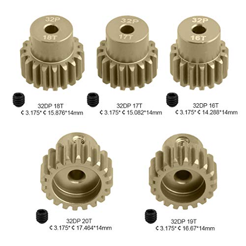 Set di 5 pignoni per motore 32DP, 20T, 19T, 18T, 17T, 16T, 3,175 mm, per motore a spazzola 1/10 RC Auto 3650, 540, 550