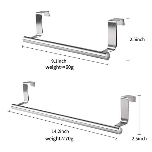 PIGPIGFLY 2 Porta Strofinacci Cucina,Appendi Strofinacci Cucina,Appendi Strofinacci,Asta Appendiabiti Sopra la Porta in Acciaio Inossidabile per Cucina e Bagno (1x 23cm,1x 36cm, argento)