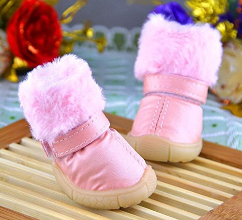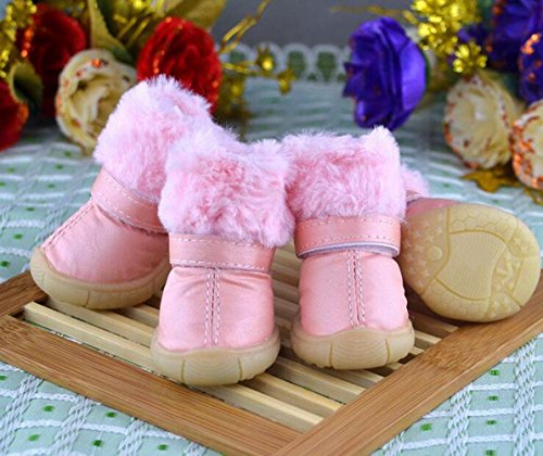 PIHF Scarpe antisdrucciolo per cani da compagnia Scarpe da neve impermeabili a pioggia antisdrucciolo Stivali per piccoli cani medi e grandi, pink, l