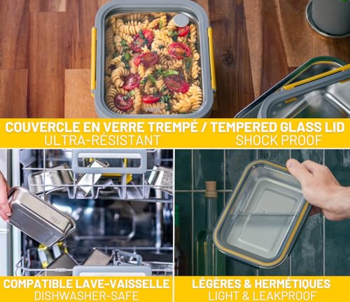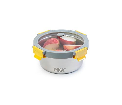 PIKA - Contenitore per alimenti in acciaio inox e coperchio in vetro temperato - Ermetico e leggero - Compatibile con microonde, forno, congelatore - MetalShock (6-650ml)