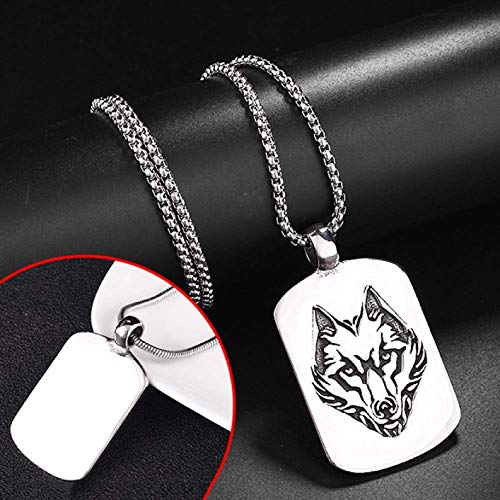 PikaLF Collana con targhetta lupo per uomo, collana pendente testa di lupo vichingo norreno con catena da 27,6 pollici, collana totem lupo retrò, collana amuleto con sigillo lupo vintage