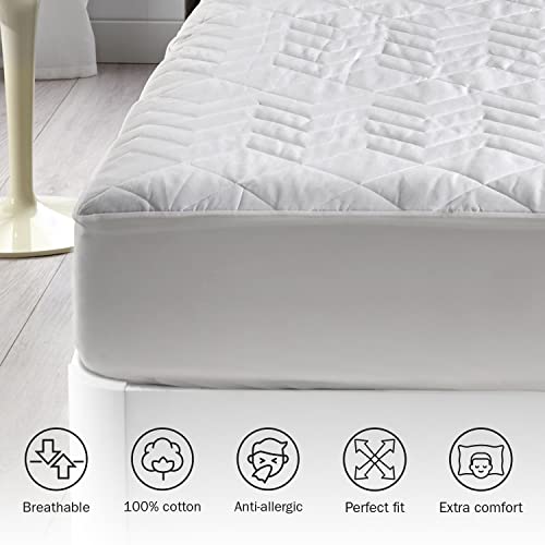 Pikolin Home - Proteggi/coprimaterasso imbottito in tessuto 100% cotone con trattamento anallergico e completamente traspirante