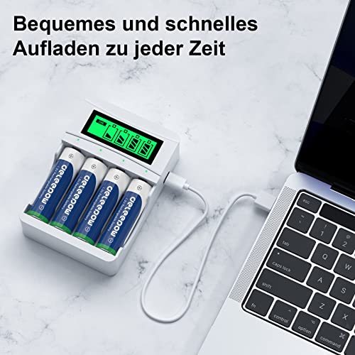 Pile Ricaricabili AA con Caricatore, Delyeepow 8 Pezzi 3300 mAh 1.2V Ni-MH Batterie Ricaricabili AA, con Caricatore Intelligente LCD Caricabatterie 4 slot Indipendente Ricarica Rapida USB