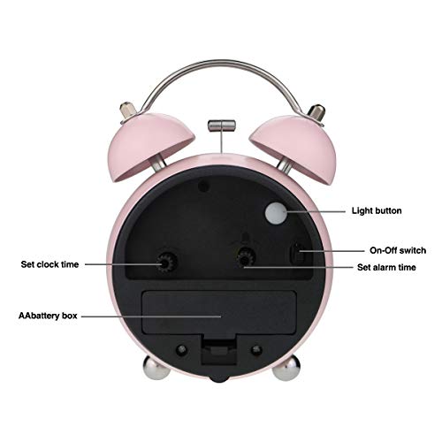 PILIFE 3.5" Mini Twin Bell Alarm Clock Novelty Clock Orologio a Pile Orologio da Comodino Orologio Non ticchettio Orologio Carino e Grazioso - Rosa Chiaro