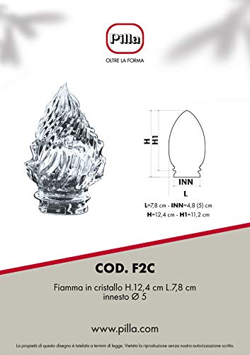 Pilla | Fiamma in cristallo trasparente di ricambio per lampade votive da cimitero | Altezza 12,4 cm, Diametro 7,8 cm, Diametro innesto 5 cm