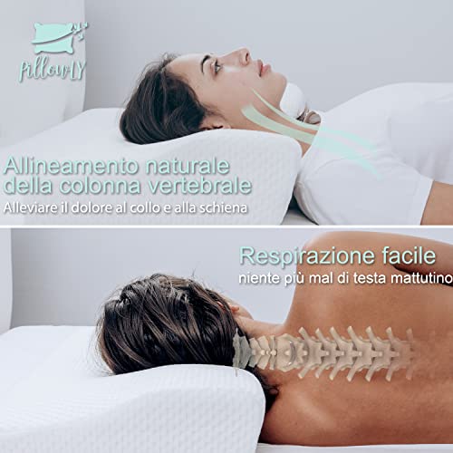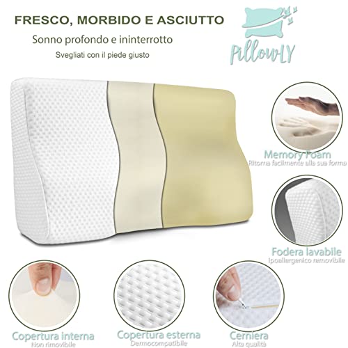 PillowLY Cuscino Ortopedico Ipoallergenico Memory Foam con Fodera Lavabile. Per Dormire
