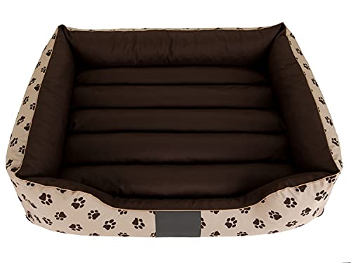 PillowPrim Cuccia per cani, cuscino per cani, cuccia per animali domestici, taglia XL, 85 x 65 cm, beige con zampe