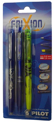 Pilot Pen 2270B3I - Set Frixion composto da 1 penna Clicker blu, 1 penna Ball blu e 1 evidenziatore giallo