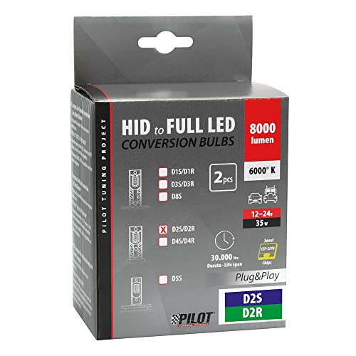 PILOT 58551 12-24V Lampade a LED per conversione fari Xenon per Auto e Camion - (D2S-D2R) - 35W - 2 pz - Scatola