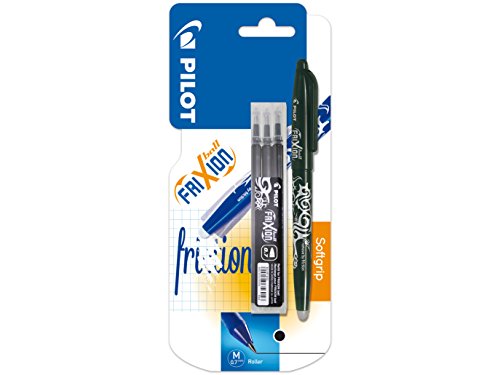 Pilot Frixion - Set di palline cancellabili da 0,7 mm (penna singola) con 3 ricariche, colore: Nero