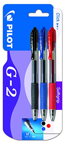 Pilot G2-BL-XS - Set 3 mini penne a sfera, colore: nero, blu e rosso