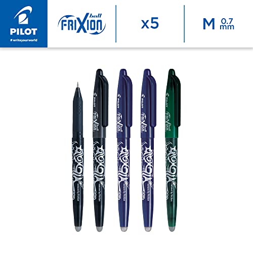 Pilot - Set di penne a sfera cancellabili"Frixion Ball", 2 nere, 2 blu, 1 verde, con punta di 0,7 mm