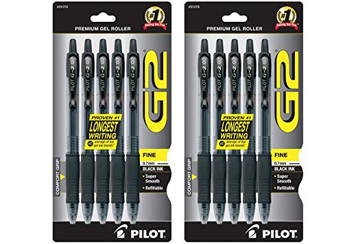Pilot G2 - Penne a sfera ricaricabili e retrattili in gel, punta fine, inchiostro nero, confezione da 10, colore: nero