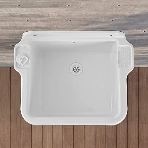 Pilozzo Lavatoio in Resina, 58x45 cm Bianco, con Portasapone, Ideale per Installazione a Muro