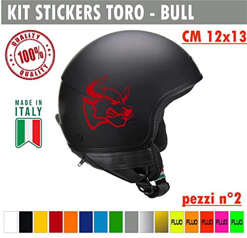 Pimastickerslab Kit 2 Adesivi Casco Toro Bull Animali Bulls Moto Auto Serbatoio Valigia Chopper Harley cod. 1732 (031 Rosso)