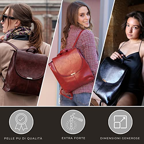 PIMAWIL Zaino Londra Zaino da donna in pelle da donna, marrone, Vaste