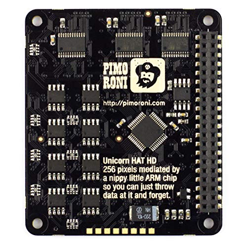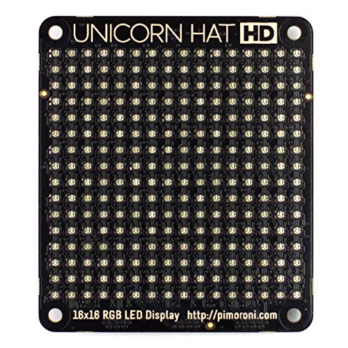 Unicorn HAT HD contrae 256 LED RGB, in una matrice 16x16, su un singolo HAT. Qualità arcobaleno ad alta definizione!