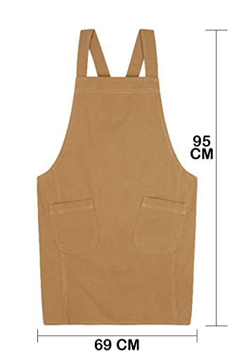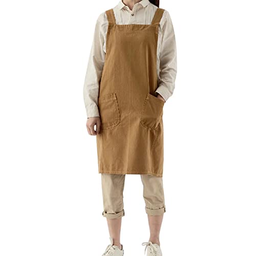 Pincy Grembiule da donna in cotone e lino, senza lacci, con tasche incrociate, ideale per fioristi, caffetterie, cucina, 23-kaki, XXL