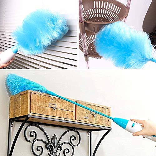 Pineocus Spin Duster - Spolverino Elettrico Bacchetta, Piumino Elettrico Multifunzione a Batteria, 360 Gradi, Rotante e motorizzato, Spazzola di Pulizia Ricaricabile, Blu