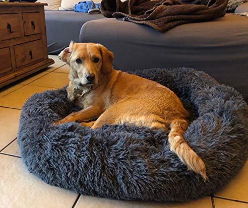 Ping bu Cuccia per cani di taglia XL, cuscino per cani di taglia grande, 110/120 cm, cuscino ortopedico calmante ciambella per cani di taglia media XL 80/100 cm, lavabile (100 cm, grigio scuro)