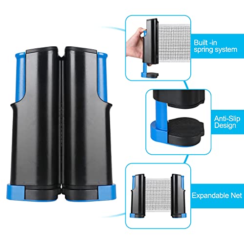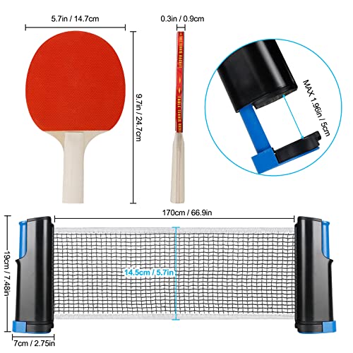 Set da Ping Pong, Istantanee Racchette da Ping Pong Racket,Set da Ping Pong - Set Racchette Ping Pong Professionale con 2 Racchette + 3 Palline +1 Regolabile Rete per attività all'aperto al Coperto