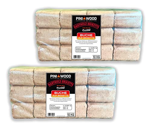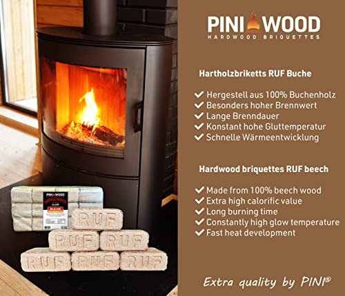 PINI Bricchette in legno al 100% faggio, bricchette in legno duro RUF, camino, barbecue, braciere, legna da ardere, 20 kg