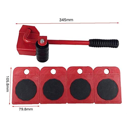 PiniceCore 5pcs Mobili Lifter Kit Paratelaio Professione Heavy Mobili Roller Spostare Tool Set della Barra della Rotella Meccanica Dispositivo Massima Fino a 100kg / 220lbs Colore Casuale