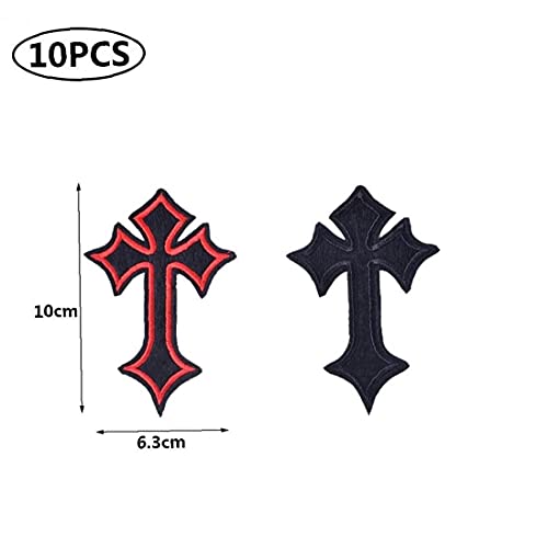 Pinicecore 10 Pz Cross Ricamato Patch per Abbigliamento Forniture per Cucire Distintivi Decorativi Applique Abbigliamento Stiro Red/Black Cross