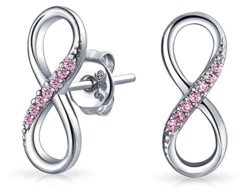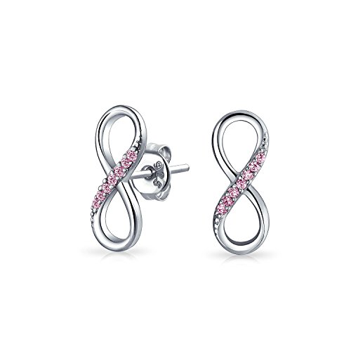 Pink Cubic Zirconia CZ Accent Pave Infinity Symbol Figure 8 Orecchini stud eternity per ragazza donne sterling argento