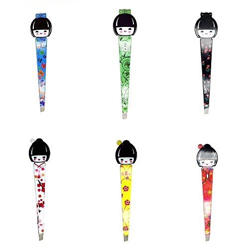 Pinkiou cosmetici Pinzetta Cute bella ragazza bambola sopracciglio Trucco pinzette Geisha giapponese Style (confezione da 6)