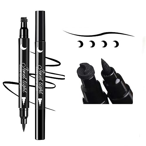 Pinkiou 2 in 1 penna per eyeliner con timbro a doppia testa penna per eyeliner nera penna per timbri per trucco occhi impermeabile (a forma di luna)